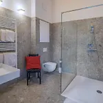 这间浴室配有淋浴和步入式淋浴间;除此之外,浴巾,吹风机和毛巾可供使用.
